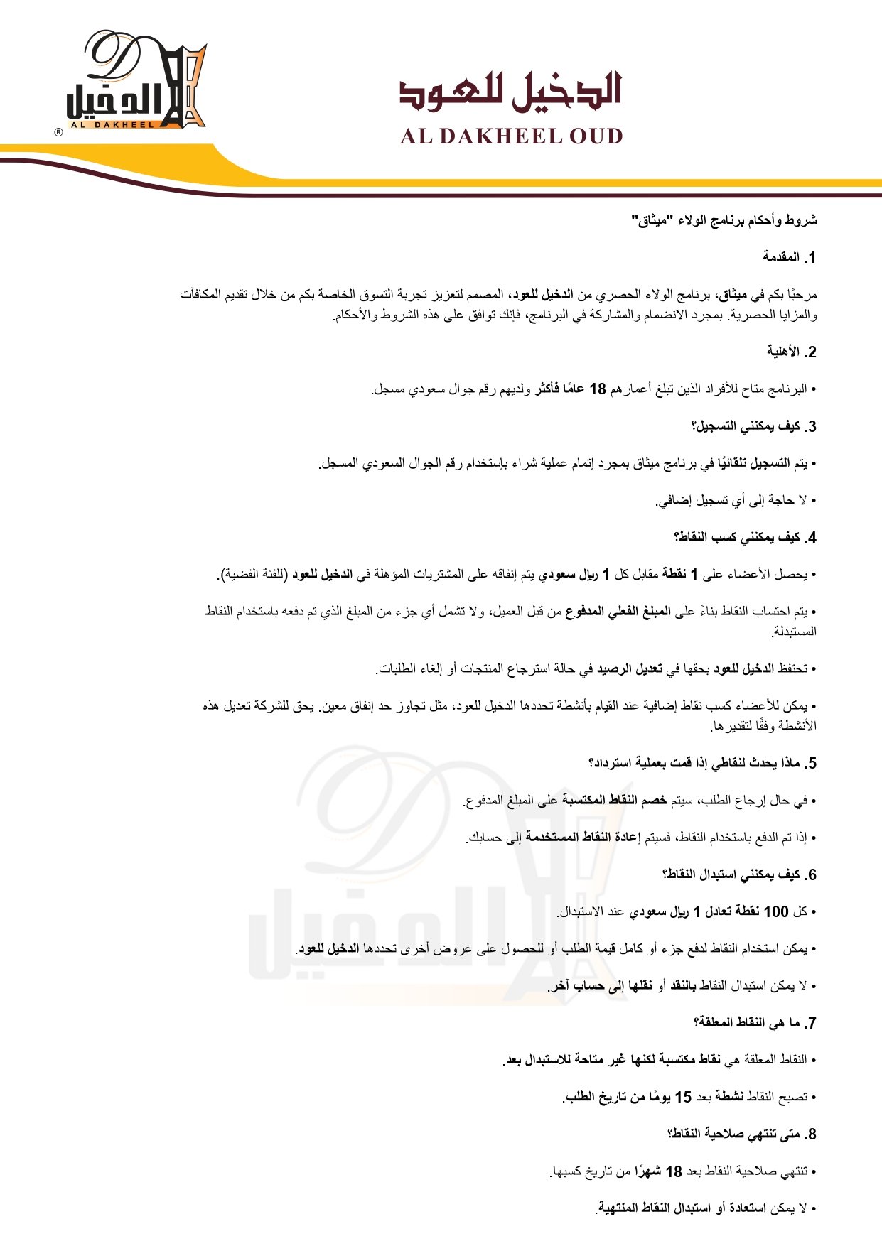 تم ايقاف برنامج ميثاق (مكافآت الولاء) مؤقتاً وسيتم إعادة تفعيله خلال الفترة القادمة، خلال هذه الفترة لن يتم إضافة النقاط على المشتريات.